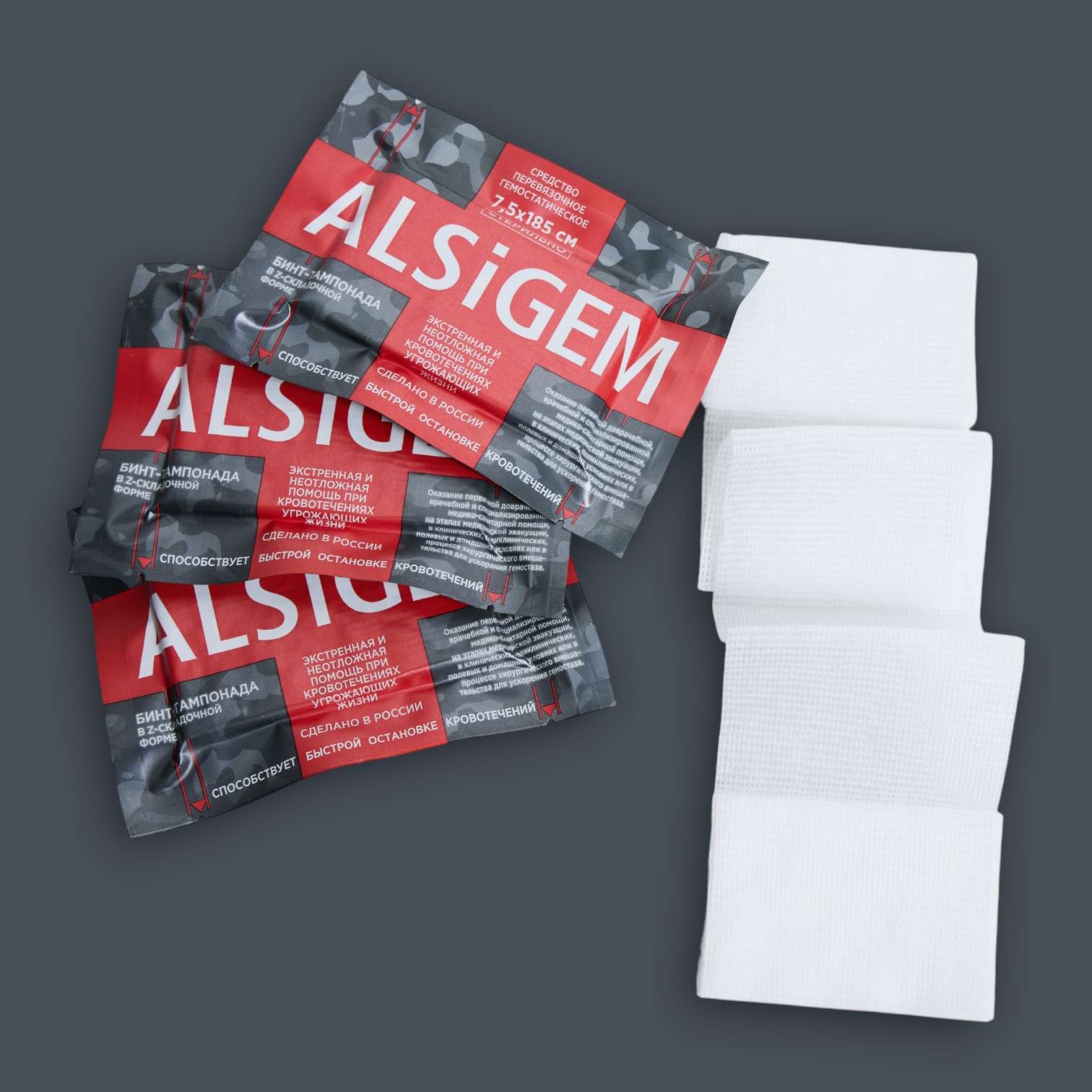 Бинт-тампонада кровоостанавливающая на основе каолина ALSiGEM 7,5х185 см