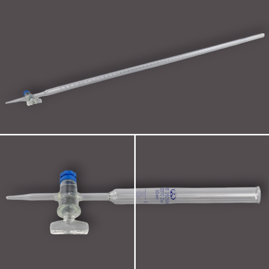 Разработана для серийного дозирования и титрования. Имеет конусный стеклянный одноходовой пришлифованный кран с резьбовым уплотнением.