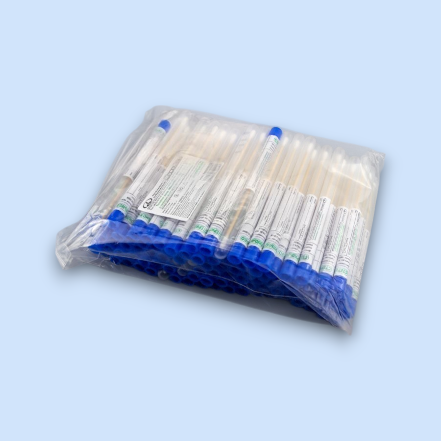 Предназначен для взятия и хранения образцов биологического материала с целью безопасной транспортировки в лабораторию для проведения анализа. Удобен для взятия смывов, в том числе санитарных. Стерильный. Тампон-зонд упакован в ударопрочную ПП-пробирку (12*155 мм). Пробирка снабжена этикеткой, на которой указаны: номер партии, дата стерилизации, срок годности, компания-производитель, компания-поставщик, регистрационное удостоверение, а также предусматривает место для нанесения сведений о пациенте и пробе. Край этикетки скреплен с пробкой, закрывающей пробирку с тампоном - этикетка служит контролем первого вскрытия.
