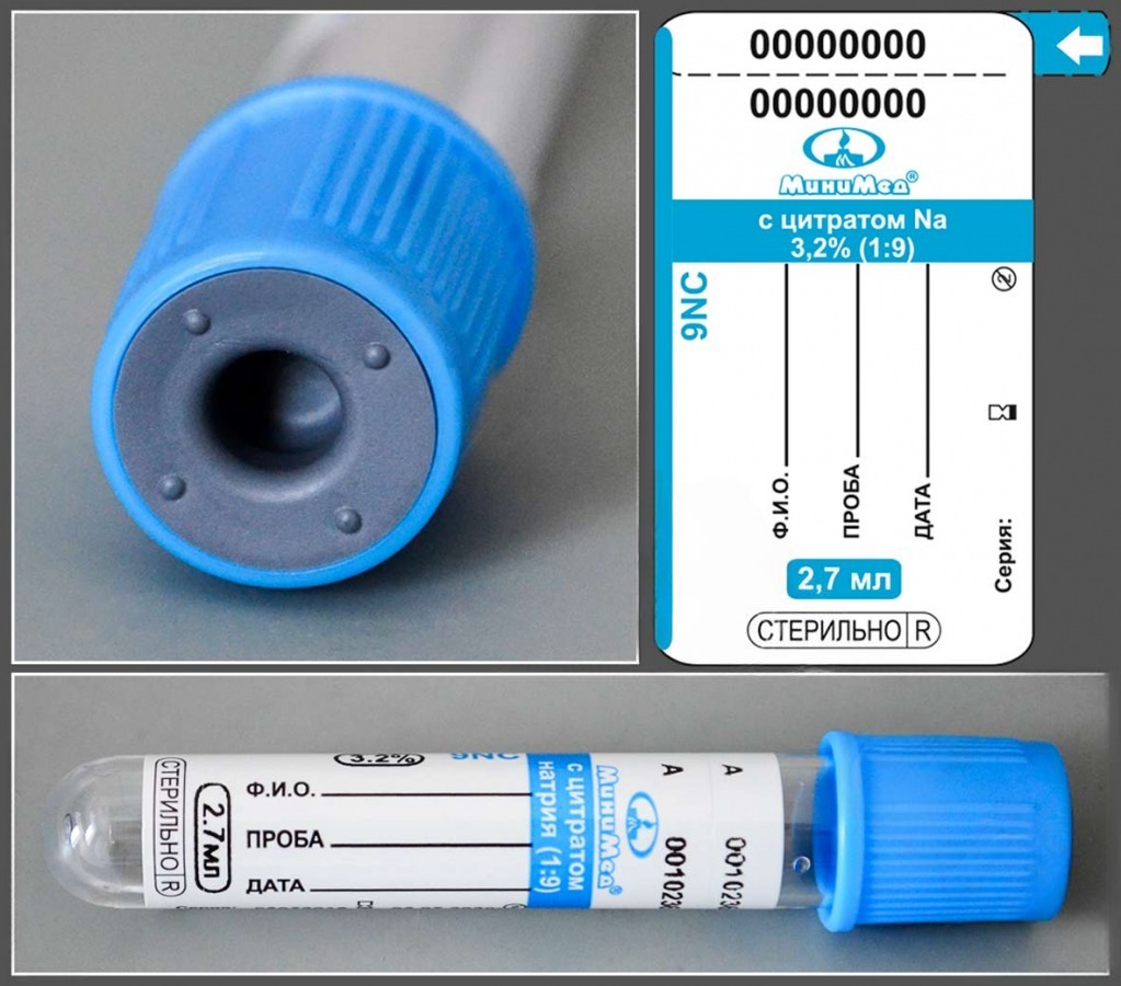Пробирки содержат буферный раствор цитрата натрия, который является антикоагулянтом. Соотношение цитрата к количеству забираемой крови 1:9.